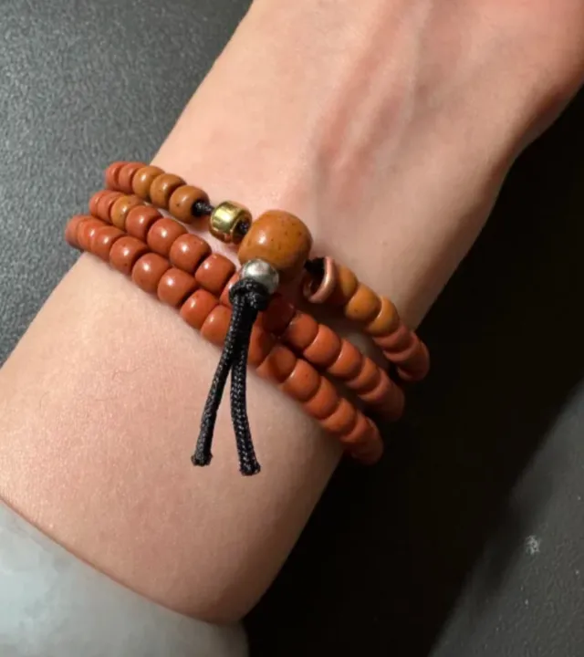 一串真正长期随身的曲扎,很多时候会出现你在新珠子上所看不到的光泽,珠子表面温润,不油腻但“有光”,线绳发乌发黑、结位紧实,气质很“沉”,没有廉价廉价感。
