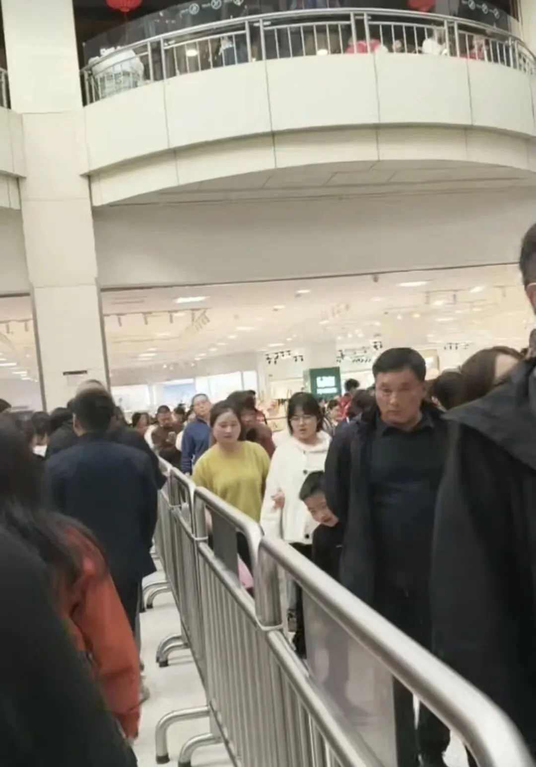 按照酒店服务人员指引,沿路西行,过第二个红绿灯路口,前方即到。老远看到“DL”的标识后,立刻加快了脚步。还未到店前,便看到熙攘的人流正沿着曲折蜿蜒的隔离栏杆排队缓慢行进。及至跟前,听到有录音喇叭在大声循环播放“此店人流量大,请先前往生活广场店!”看到狭长而缓慢的人流,于是忙问一边的工作人员,生活广场店怎么走?一路直行,第一个红绿灯左转。走了好一段时间,竟一直没看到红绿灯,这一个红绿灯的距离该有多长!好不容易到了红绿灯路口,左转一看,亚麻呆住了,人流量比之前的店还大。没办法,跟着人流,排队走吧!隔离栏杆每隔一段都挂着一块牌子,牌子上写着“离进店还有**小时**分钟”的提醒,每隔一段都挂着一个塑料垃圾箱,方便顾客丢弃垃圾。走了一段才发现,这人流竟然从店东面的广场一直排到了店南面的广场,最后一直延伸到店内一楼。好在人流顺畅,速度不慢。进入店内,再一次傻眼,里面人挨人人挤人,非“人从众”可以形容啊!从店外到店内,人流量堪比桂林的象鼻山、长沙的岳麓山·橘子洲旅游区的5A景区,甚至有过之而无不及。
