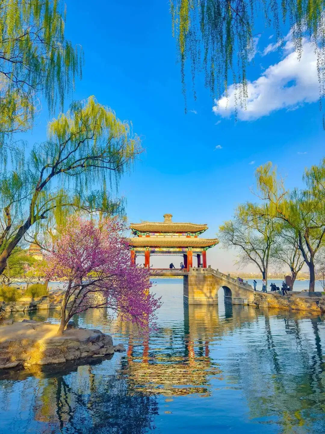 买张门票能在里面.晃悠一整天。.昆.明湖大得一眼望.不到边,十七孔桥的狮子.个.个表情不同.。长廊的.彩画.讲.着老故事,.走得累.了,.随便找个靠湖的椅子坐.下.,看游船慢慢.划过.水.面.。