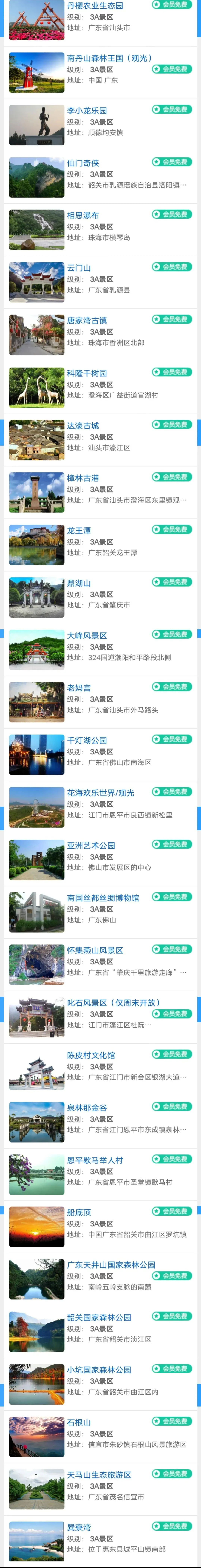 点击直接购买 关注公众号了解详情 全国旅游年卡之 广东旅游年卡景区目录