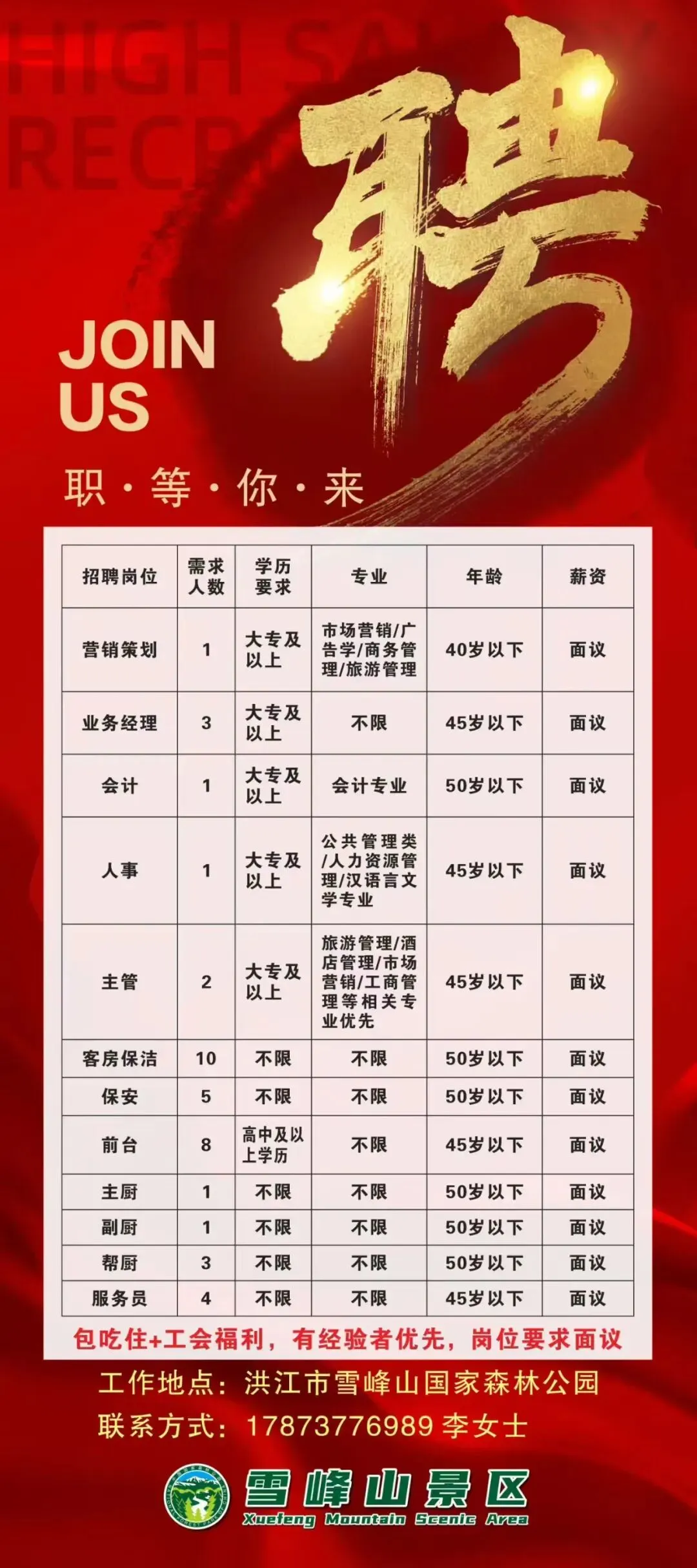雪峰山景区现面向社会公开招聘,岗位多、机会多,包吃包住+工会福利,有经验者优先,期待你的加入!