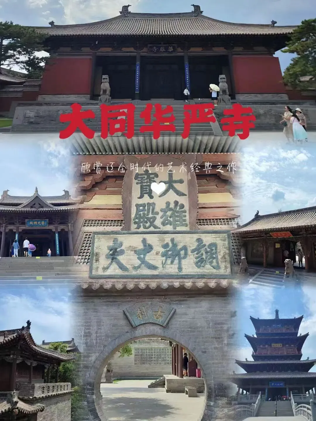 世界文化遗产,距今1500余年。现存45座主要洞窟,5.9万余尊造像,是中国佛教艺术的巅峰之作。门票:旺季120元/人,淡季100元/人,距离市区偏远,建议游玩0.5-1天。景区有便民观光车,往返,个人建议年纪小或大的可以坐,15元/人。 华严寺·辽金巨刹的静默守望