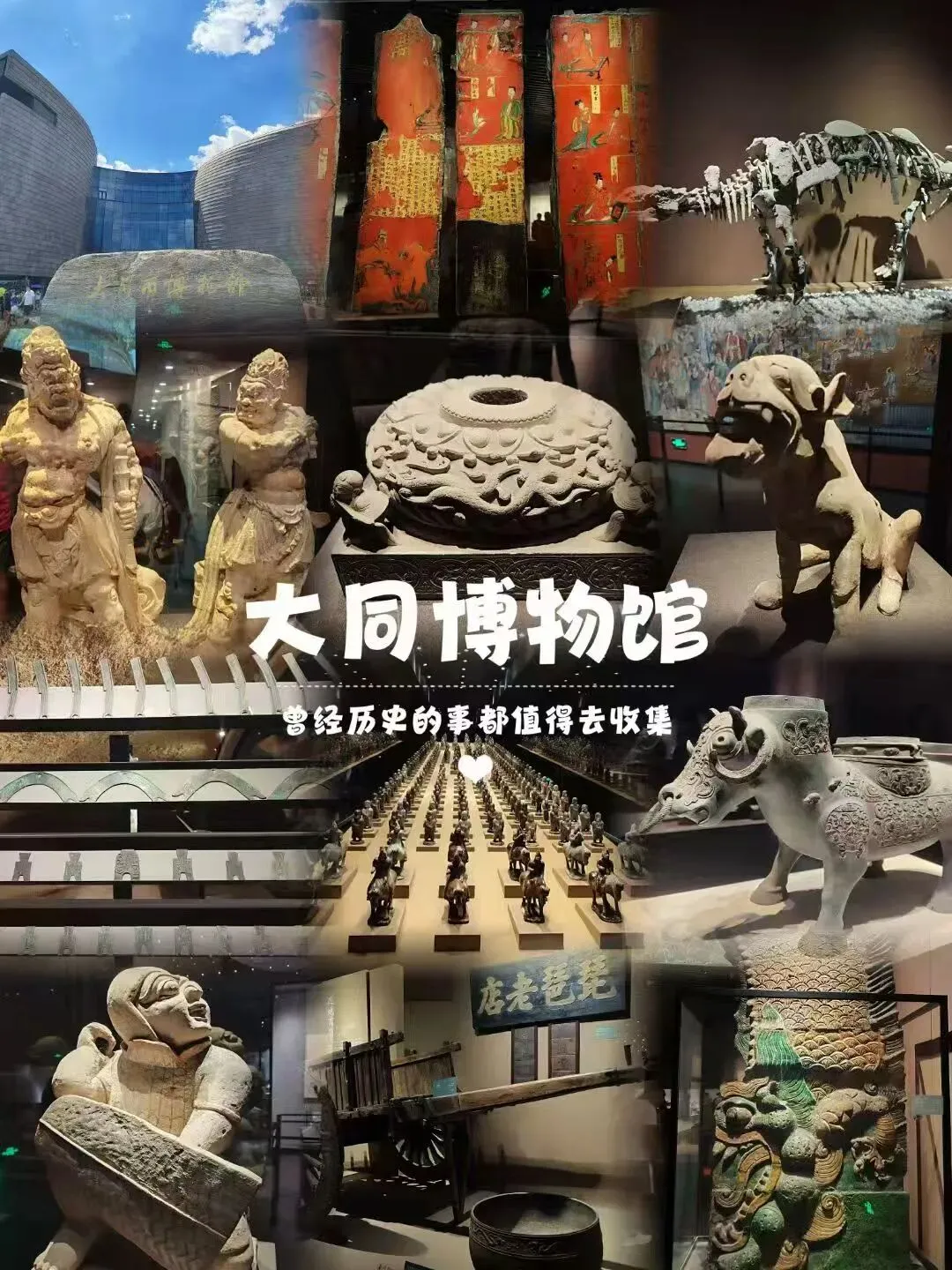 国家一级博物馆,建筑外观融合大同火山群、龙壁文化和云冈石窟元素,呈相互盘旋的双“S”造型。馆藏“北魏蓝”玻璃器、司马金龙墓俑阵、华严寺琉璃鸱枭堪称镇馆之宝,大厅内的巨幅壁画《北魏贵胄出行图》亦不容错过。门票免费,建议游玩4-6小时。 --- 大同,不只是一座城,更是时间的容器。 这个周末,出发吧。