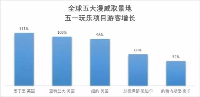 携程发布的《五一假期“复联”全球玩乐排行榜》显示,“五一”期间中国影迷涌入爱丁堡,在预定英国玩乐产品的游客中,35%选择爱丁堡玩乐项目,同比增长111%。“奇异博士”苦修取景地加德满都和“黑豹”黄金城取景地约翰内斯堡同比增长超50%。2019年预定英国玩乐产品的游客中,有超过30%游客选择去爱丁堡,同比增长6倍。