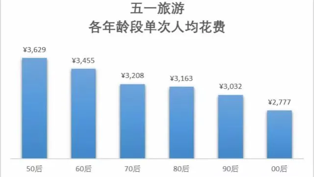 值得注意的是,50后成为“五一”旅游最舍得花钱的人群,单次旅游人均花费达3629元。