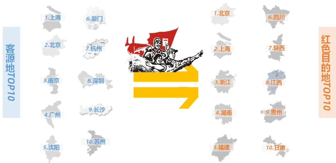 还有湘赣闽红色旅游区、沪浙红色旅游区、左右江红色旅游区、黔北黔西红色旅游区,还有四川的雪山草地的景区,陕甘宁革命老区、东北的红色旅游区、鲁苏皖红色旅游区、大别山红色旅游区、太行山红色旅游区、川陕渝红色旅游区、京津冀红色旅游区等等,红色景区景点集中的地方,都是游客比较集中的目的地。
