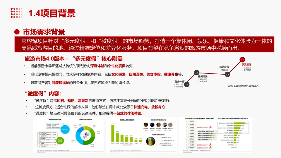 本方案为山西秀容驿温泉康养旅游综合体的完整规划运营方案。项目位于忻州,依托当地富含氡、硅酸等矿物质的优质温泉资源及“太忻一体化”战略背景,旨在打造世界级温泉康养旅游目的地。规划以“一核双区六板块”为结构,核心是温泉康养,并围绕其布局文旅康养区与度假配套区,涵盖温泉水世界、主题酒店、温泉住区、四季花海等多元业态。运营上将通过品牌化、产品化、社群化策略,对标无锡拈花湾,塑造“南有拈花湾,北有秀容驿”的品牌形象。项目总投资9亿元,预计2025年接待游客500万人次。