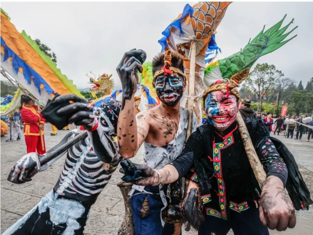 腻粑龙巡城互动及花脸龙非遗体验。