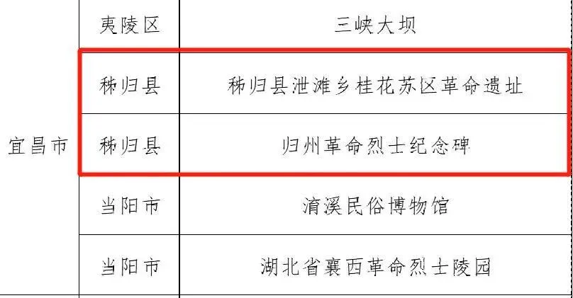 在红色景点景区分类下选择编号009归州革命烈士纪念碑和编号046秭归县泄滩乡桂花苏区革命遗址,为上榜景区投票!