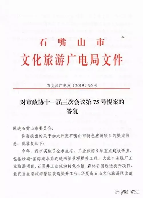【提案答复】关于加大开发石嘴山市特色旅游项目的提案及答复