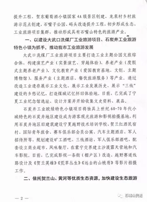 案由:关于加大开发石嘴山市特色旅游项目的提案