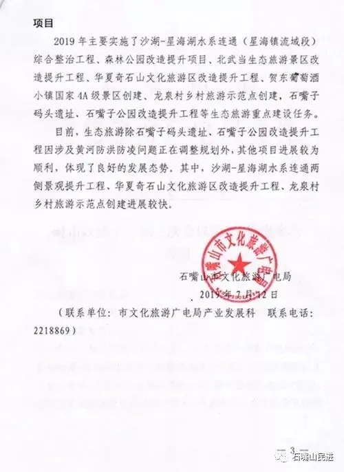 内容:近年来,我市实施全域旅游开发,取得一定成绩,需要不断的总结经验、挖掘和促进,让全社会来支持我市全域旅游发展。目前,在宁夏五城市的旅游项目中,重复建设,服务雷同的现象明显存在。我们应该根据石嘴山的地域特点和旅游资源,开发一些最具特色的旅游项目,来统筹发展做精,吸引游客来我市。