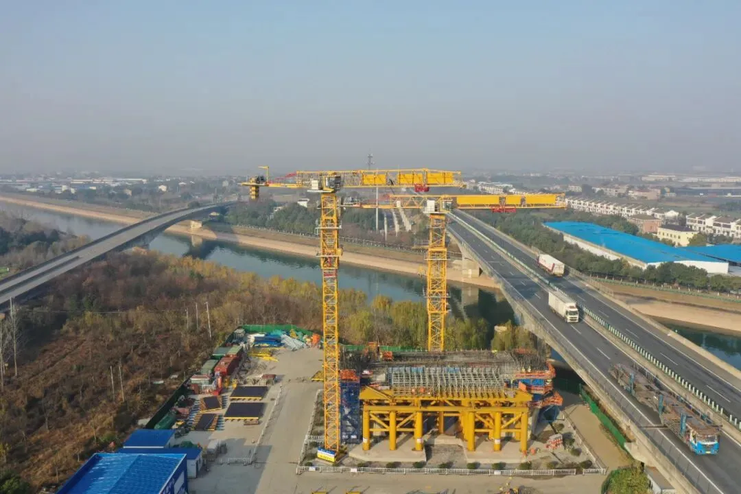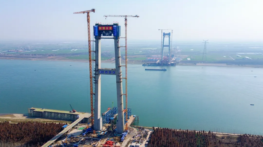 李埠长江公铁大桥双主塔封顶
