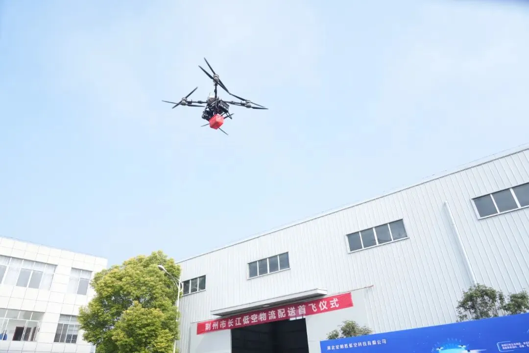荆州市长江低空物流配送首飞仪式