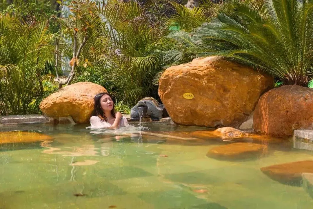 温泉水中加入玫瑰花瓣,芳香四溢,具有美容养颜、理气活血,促进新陈代谢之功效,玫瑰泉可以让身心得到放松,很适合女孩子。