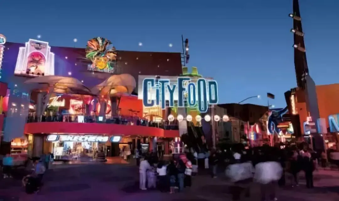 洛杉矶环球影城步行街是依托奥斯卡典礼及电影主题活动,以电影为主题的休闲娱乐购物街区。街区共有40多家专营店、餐饮店和娱乐场所,总建筑面积约2.5万平米。街区紧扣电影主题,设计绚烂的霓虹灯,举办丰富的现场表演、酒吧演奏等等,吸引人流聚集,延长游客驻足时间。