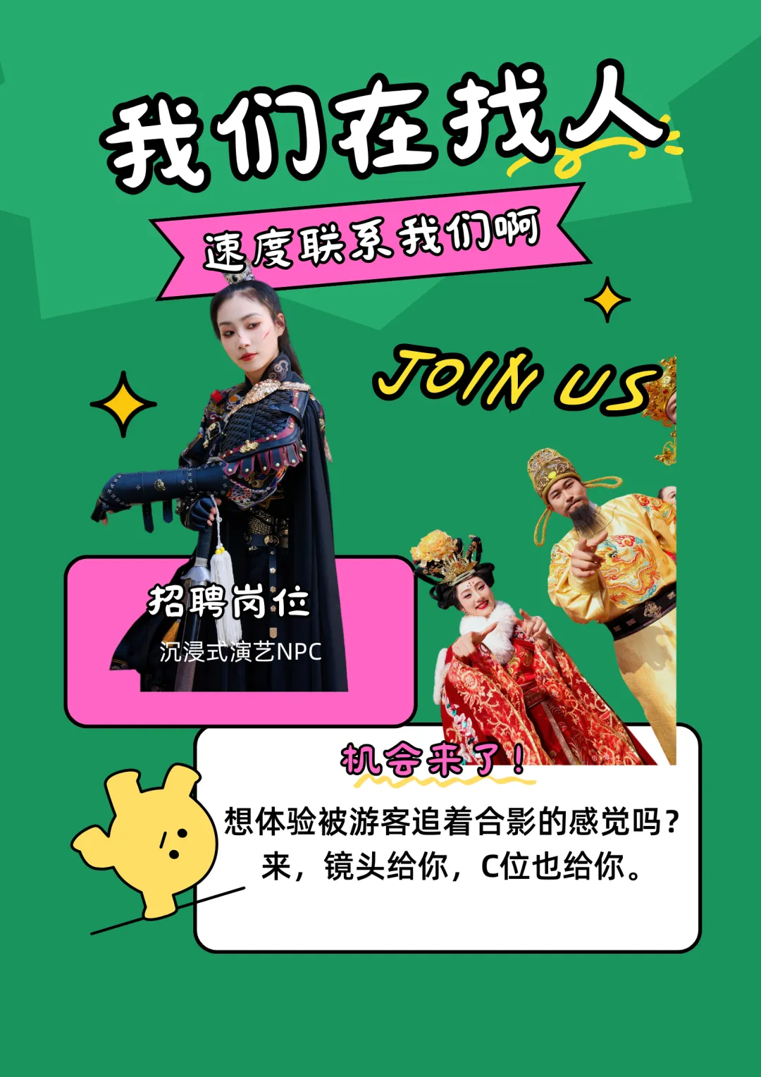 我们要找的不是演员,是天生就该站在C位的你不管你是社牛本牛还是穿上汉服就自动入戏的“戏精”只要你敢来整个长安都是你的背景板
