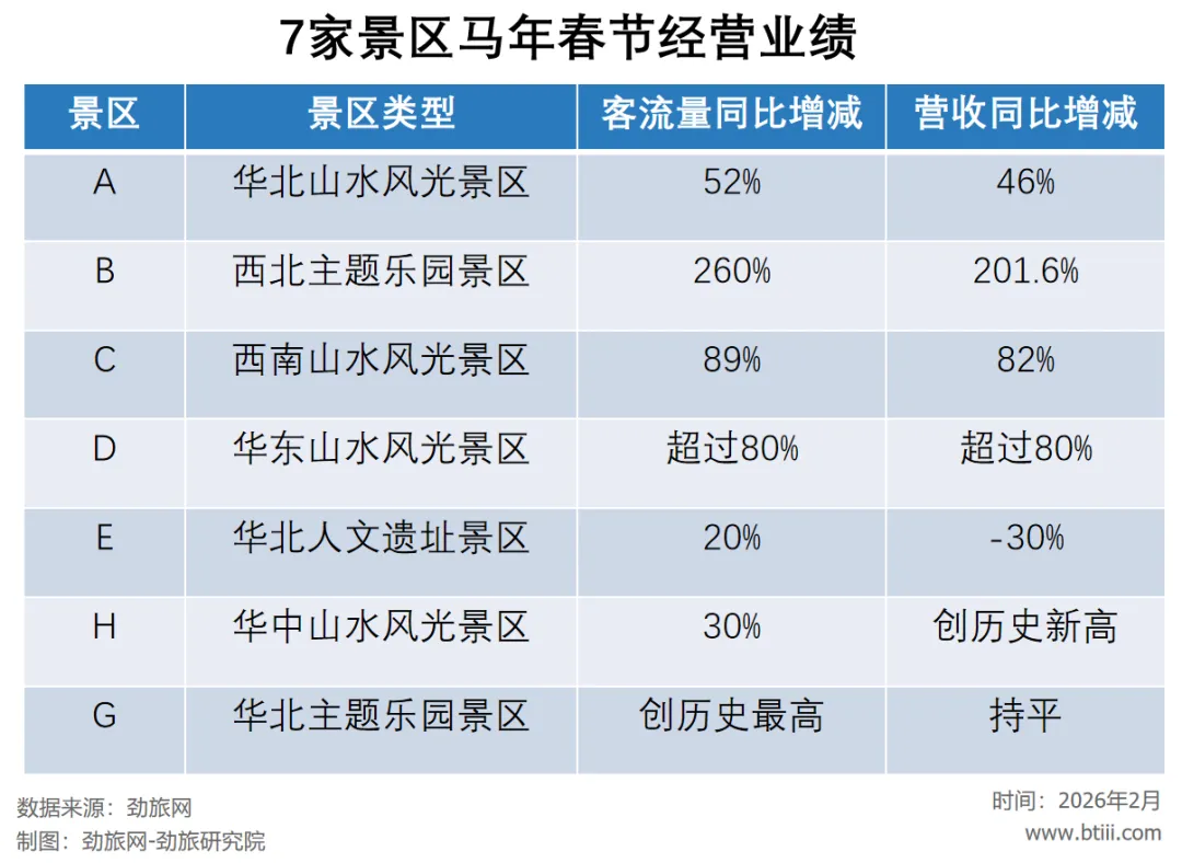 劲旅君随机调研的不同区域、不同类型的十多家景区中,7家景区明确披露马年春节经营业绩: