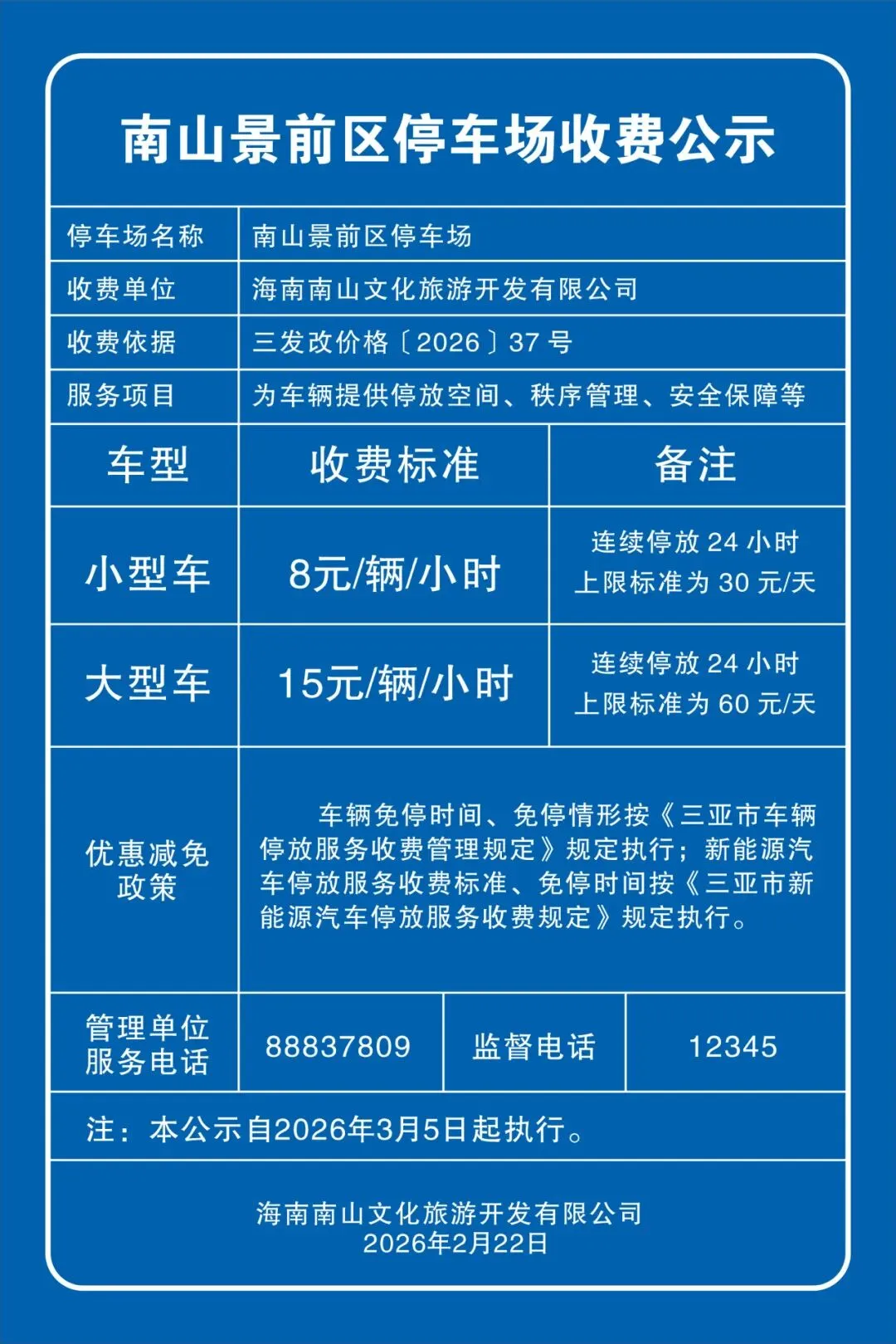 三亚南山文化旅游区 | 景前区停车场收费公示