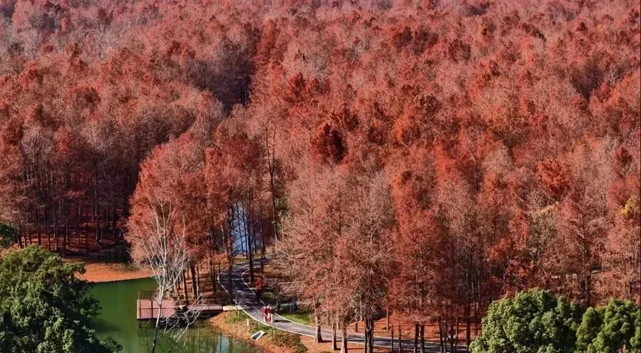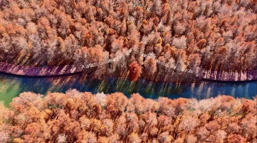 以8000平方米水上森林刷屏朋友圈的横沔公园,总面积达72.36公顷,相当于101个标准足球场那么大。在横沔“森林秘境”里,一排排落羽杉立在水中,阳光洒下时枝叶泛着暖红光泽,倒映在水面上像闯入莫奈油画,阿姨爷叔都忍不住驻足拍照!这里不止有颜值,还藏着八大林间主题空间,承包全年龄段快乐:水上森林、杉林穿梭、森林瑜伽、林涧乐桨、森野营地、沔溪渔趣、儿童友好、活力健身......实现“可休憩、可游览、可参与”的全维度体验空间。