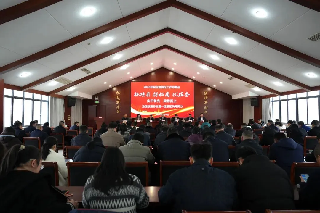 会议全面回顾总结2025年工作成效,确立了“抓项目、拼招商、优服务,实干争先、乘势而上,为加快跻身全国一流景区共同努力”的总体思路,提出了“233”年度工作目标:即完成有效投资20亿元,盐官古城接待游客300万人次,实现直接旅游营收3亿元。同时,会议部署“1215”任务攻坚体系,围绕一幅蓝图、锚定两大核心、紧扣一张重点任务清单、实施五大攻坚任务,以更高标准、更实举措推动度假区发展迈上新台阶。
