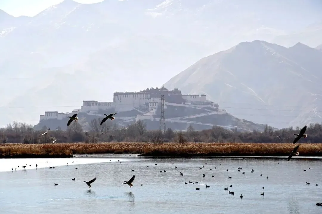 12.2平方公里的天然湿地,相当于1700个标准足球场大小,静静卧在拉萨城区,距布达拉宫仅约3公里。