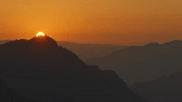 余晖洒满群山,云海染成橘子汽水色