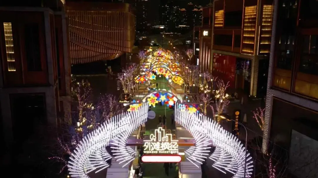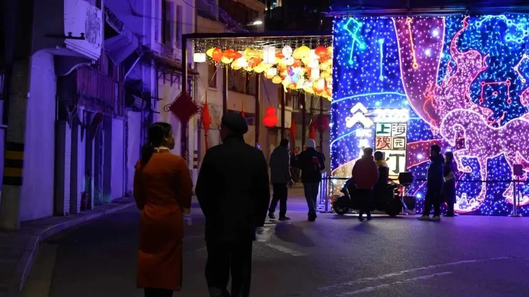 外滩枫径化身为一条璀璨的“国风灯影长廊”,在渐变柔和的灯光下营造出一片可漫步赏灯的诗意氛围;而在BFC上街沿,IP的萌趣世界悄然降临,各式点金奔腾灯组错落分布,将整片街区的烟火气浸润在可爱与温暖的氛围之中,成为新春佳节不可或缺的亮色!露台上也有新看点!在BFC露台,星星人-星梦迎春装置温馨点亮。星星人化身为瓷上灵动祥纹,或嬉戏星间,或伴马共舞,以青花笔触勾勒美好期许,借熠熠星光传递真挚祝愿。愿新年好运如瓷韵悠长,福泽常伴,勇启新程。