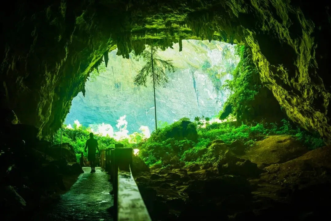 乘车前往【百鸟岩】(游览约1小时)又名水波天窗、延寿洞,位于甲篆乡西北面的漠斋山下,该洞是个独特的地下河溶洞,是大自然几亿年来的杰作。百鸟岩的成因主要是在地下河水对漠斋山不断的溶蚀、浸蚀、崩塌的漫长过程中扩大而形成。