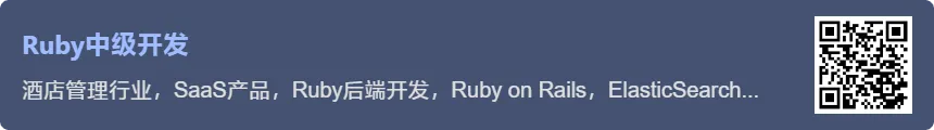 Ruby中级开发 https://eleduck.com/tposts/jAf03r 来源: 电鸭社区 团队: Airhost 摘要: 酒店管理行业,SaaS产品,Ruby后端开发,Ruby on Rails,ElasticSearch, 英语交流能力,初级 15k,中级 18-23k |