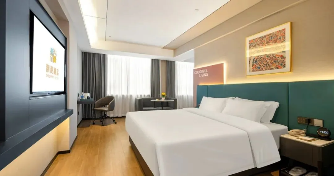 房间都是30平方,大床房及双床房空间一样大~单人包房只能安排大床房~