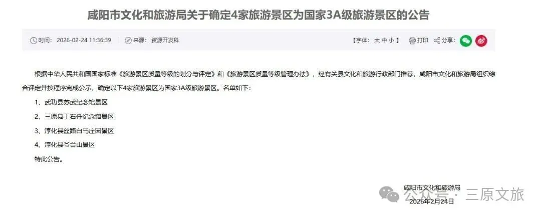 于右任纪念馆景区被正式确定为国家3A级旅游景区,这是我县文旅产业发展的又一重要成果。