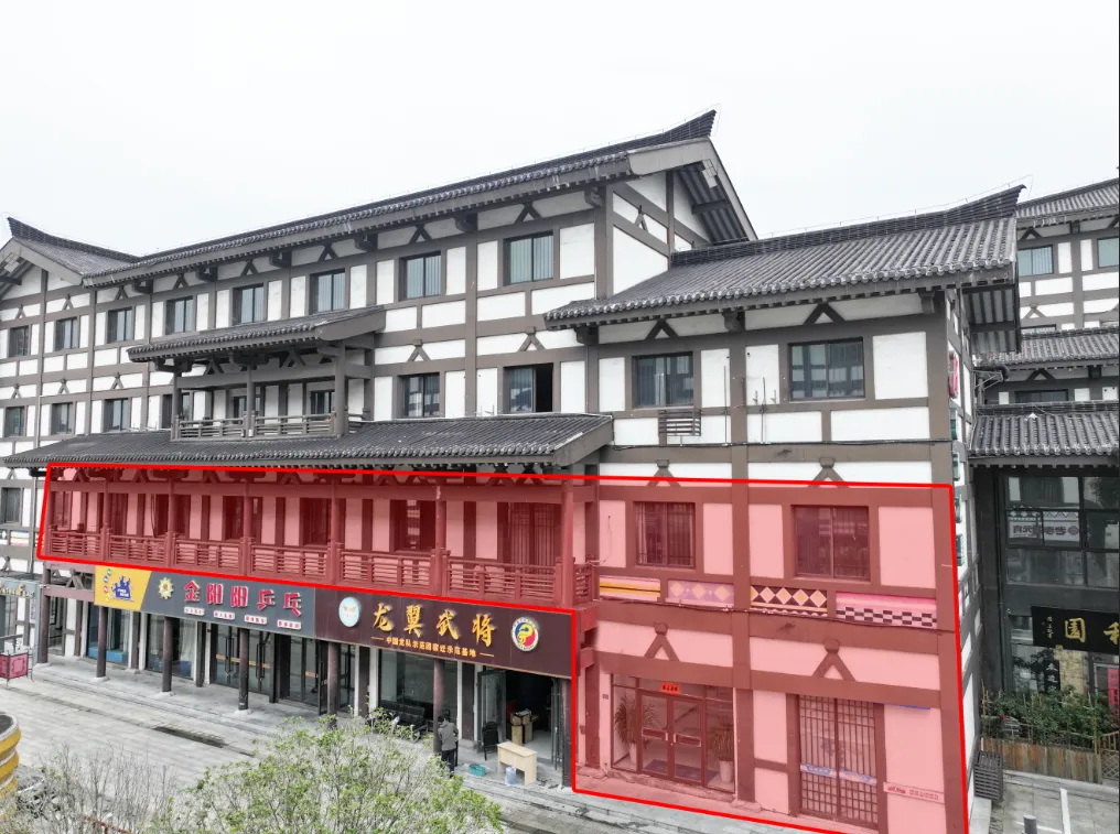 商铺位置:2号楼南侧二层-景区出口(图中标红区域)