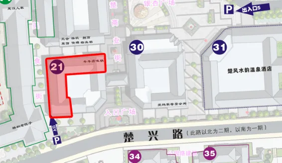 商铺位置:23号楼一层-西楚大街(图中标红区域)