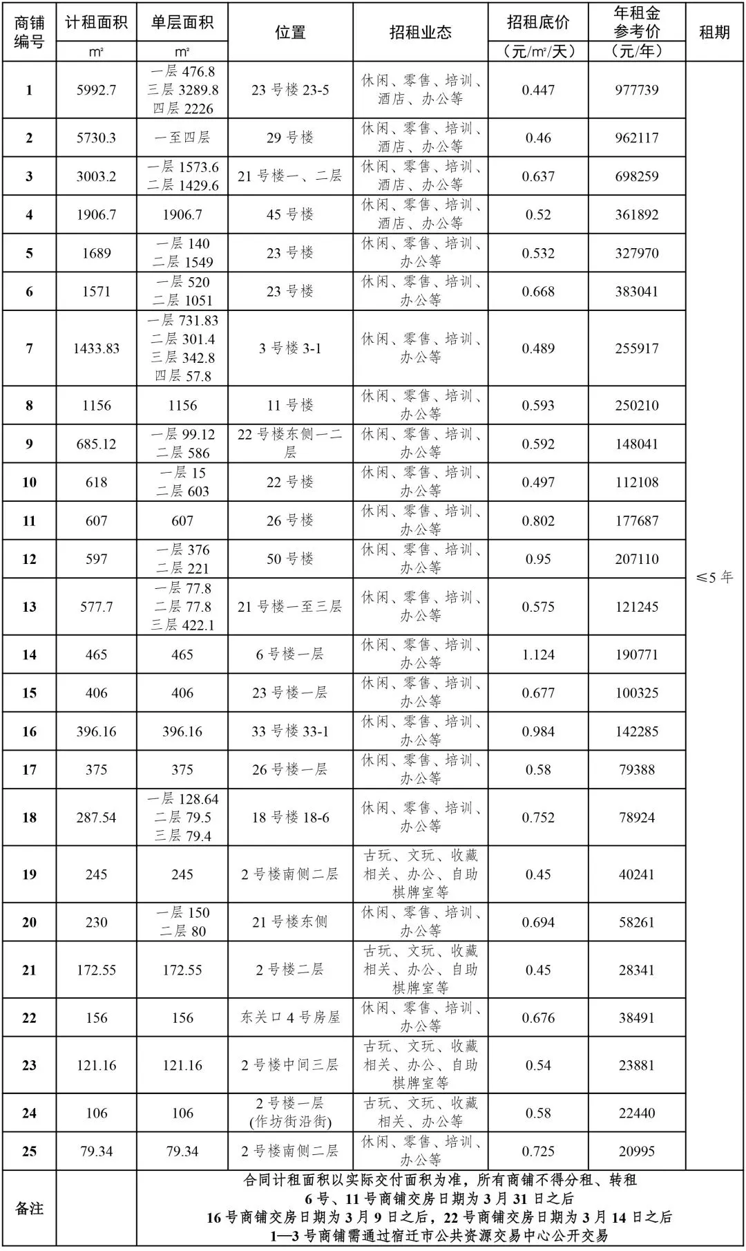 根据规划,现对项王故里景区部分空置房屋进行公开招租,共25间,相关信息如下: