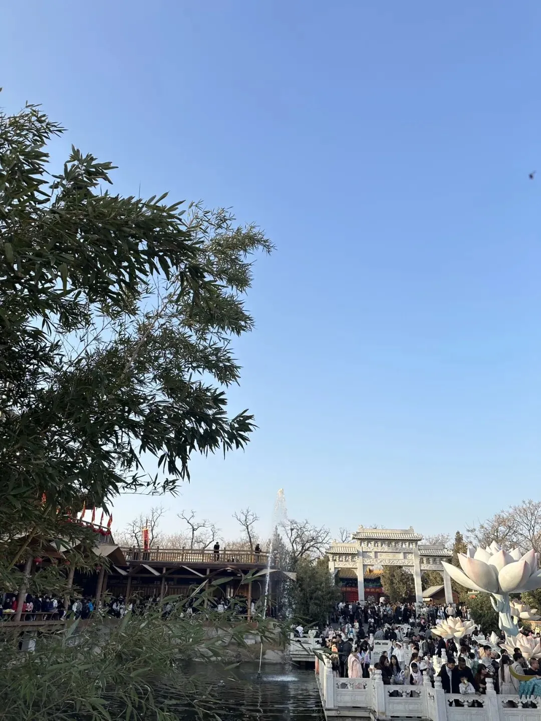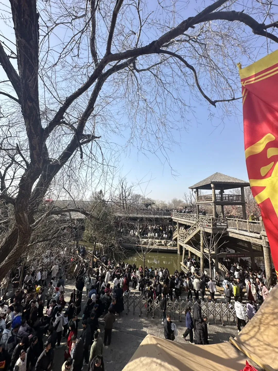 一直想来开封万岁山游玩,所以马年旅行第一站直接出发!🚗心里做好了人多拥挤的建设,提前一天就到了开封市区,打算逛逛夜市吃吃美食,第二天早早出发到景区,想着现在过年景区门票也限流限量应该能好点,没想到低估了人们的热情,大家对万岁山是真爱,一聊天发现身边好几个朋友都不约而同来了这里!