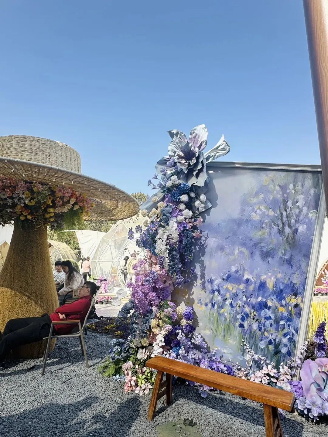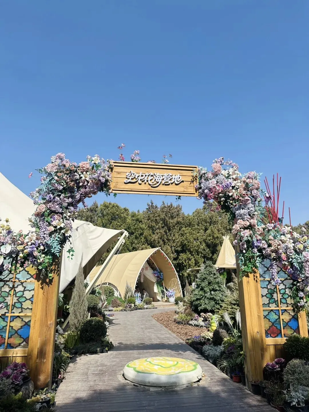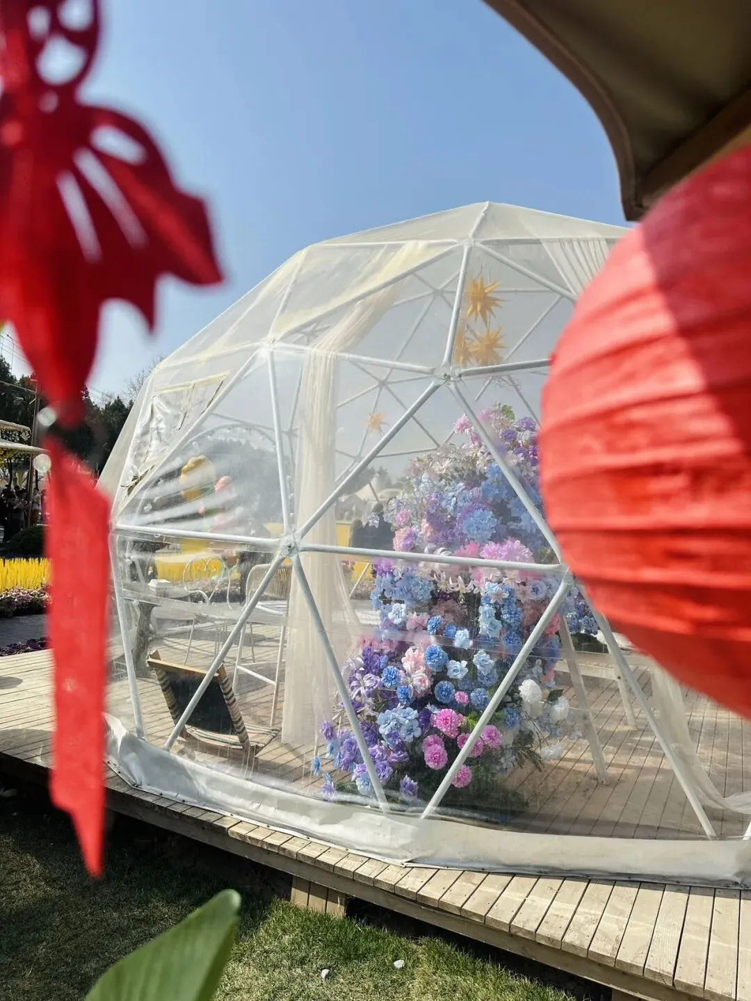 走到后边惊喜发现银丝古建后山坡上有花海世界露营区,绿树花海,露营帐篷休息椅都有,非常有春天的感觉🌿
