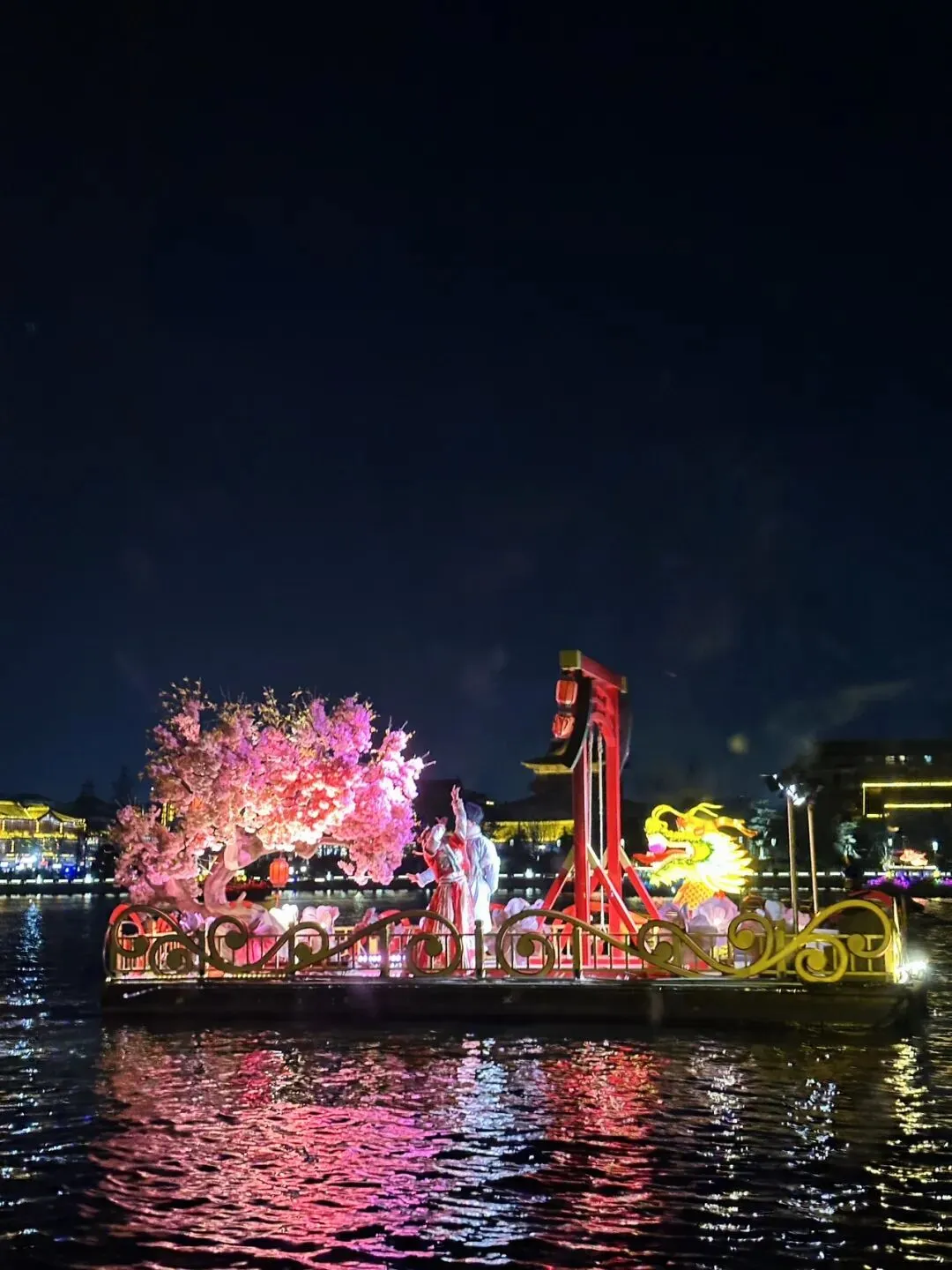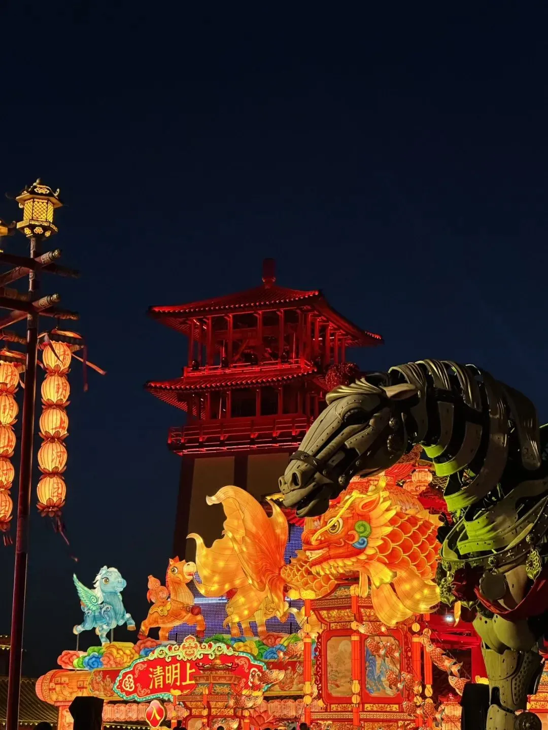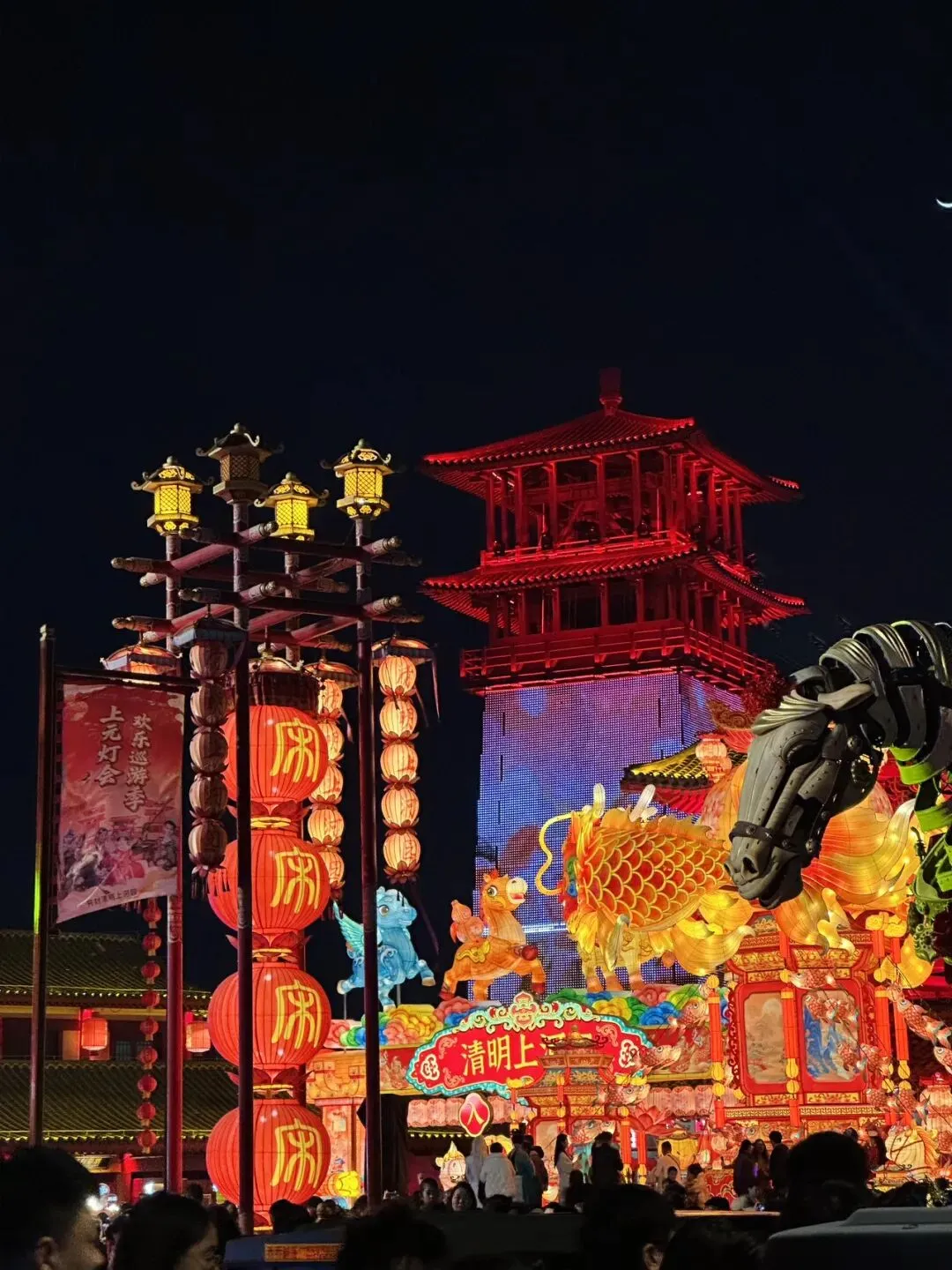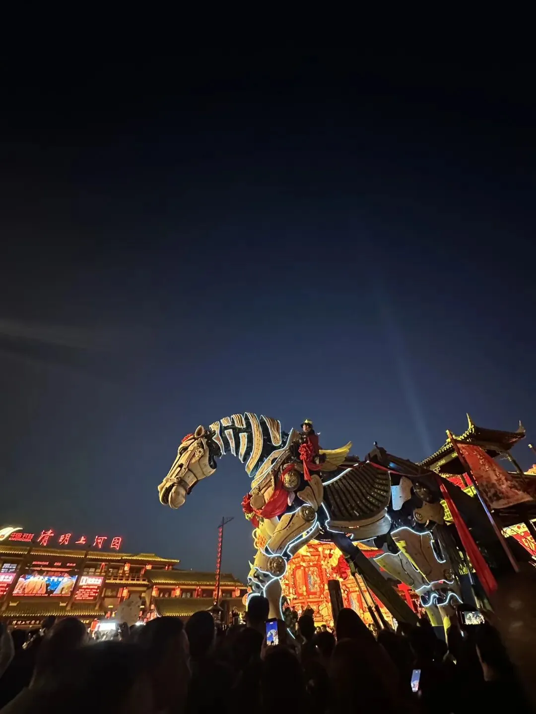 全是人,放大拍了几张花灯夜景,也无心找好角度了,在对面码头排队中隔着马路拍的,电子马和传统花灯结合,不得不说河南文旅,各大景区在项目创造花活儿上,创意无限,有各种类型节目吸引人,怪不得大家知道人多也趋之若鹜,源源不断来捧场哈😅