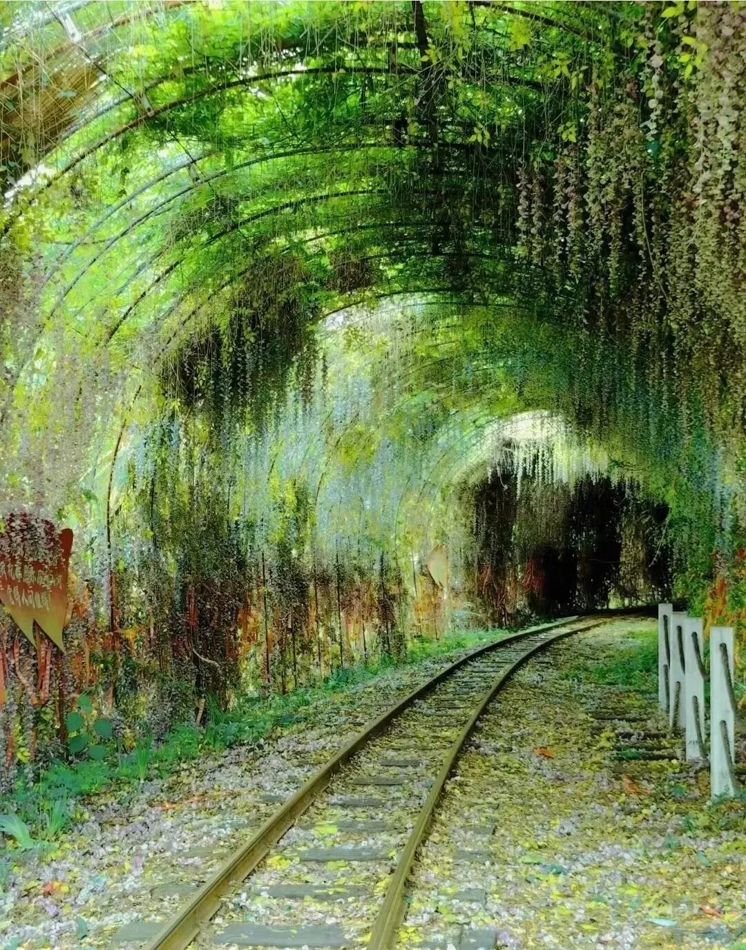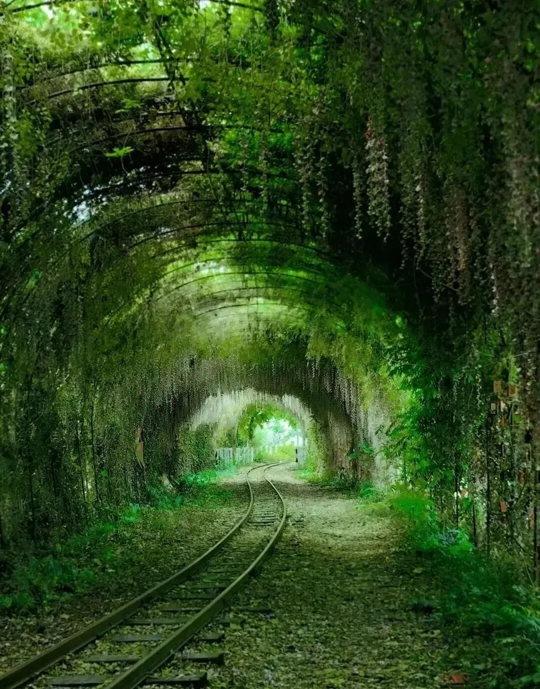 爬满绿植的隧道,深邃蜿蜒,仿佛绿色的时空隧道~