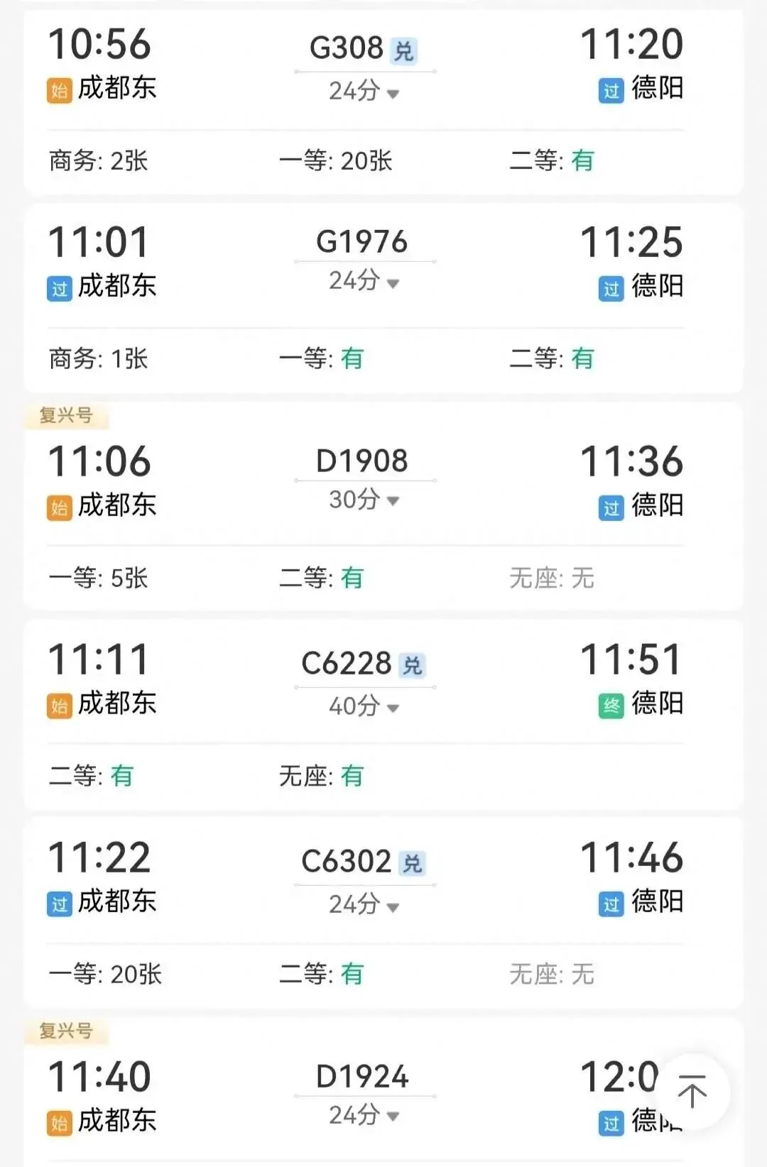 成都到德阳,高铁二十多分钟即可到达~