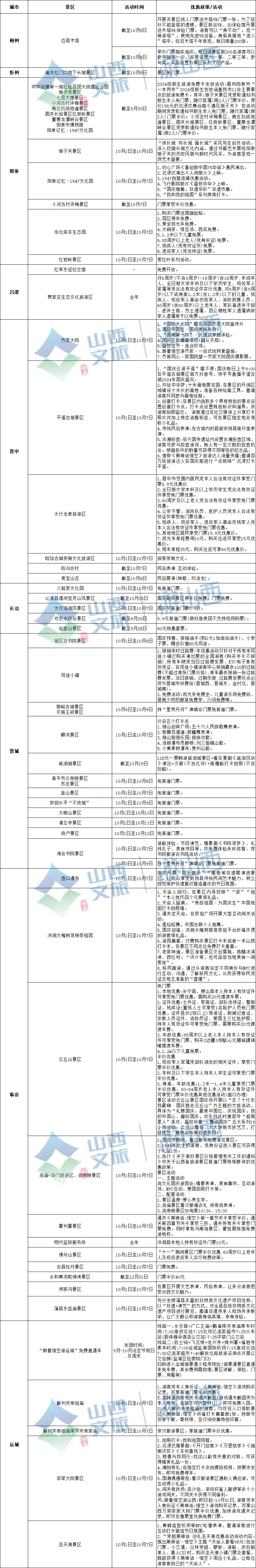 出游前 建议您查阅目的地景区最新资讯 所有优惠以景区最新公布为准 国庆假期 来山西 感受不一样的风景吧 来源:山西日报 SHUOZHOUFABU