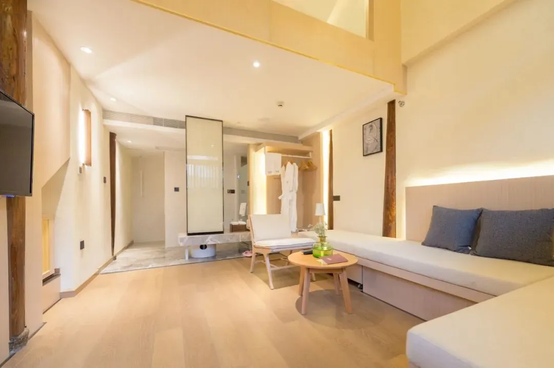 到了夜晚,则可以感受到村落的另一面,在文艺庭院里,泡一壶清茶,聊余生一盏;月升日落时,伴着疏星,一晌安眠。