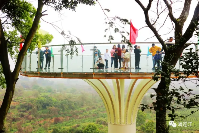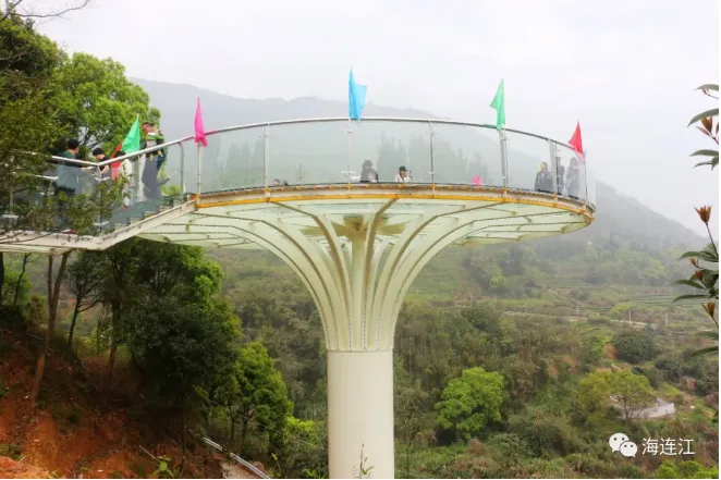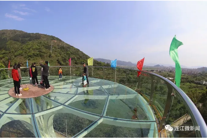 岭坪生态园 透堡镇西门村的岭坪生态园这个刚建成不久的玻璃观景平台,因独特的造型走红了连江人的朋友圈。整个平台呈圆形,如花朵一般绽放在半空中。