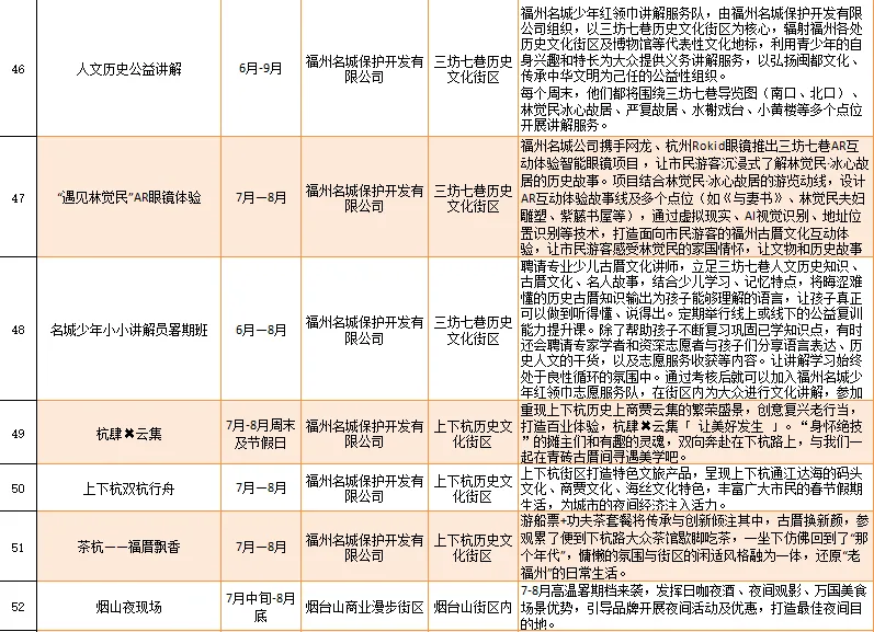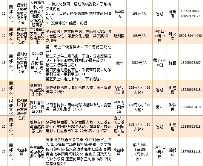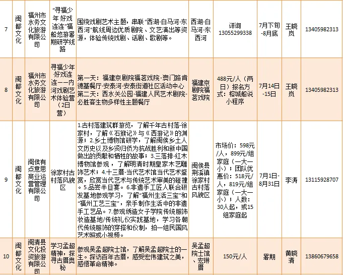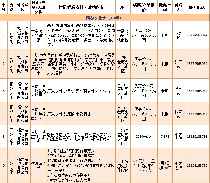 如福州名城保护开发有限公司等推出“朱紫坊丨人文研学游”“三坊七巷丨翰墨寻迹·探寻严复的一生”等19项闽都文化类的研学旅游产品。