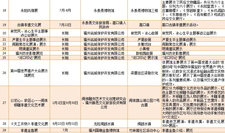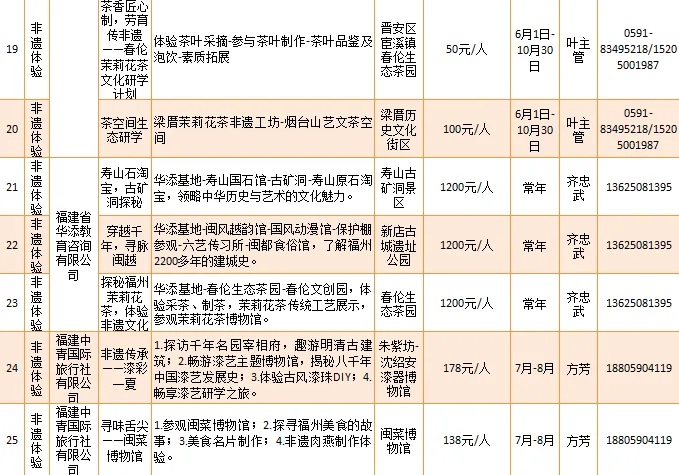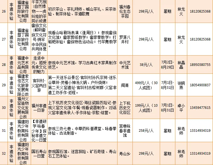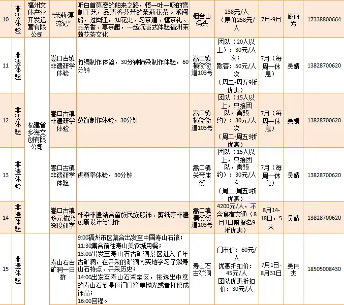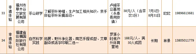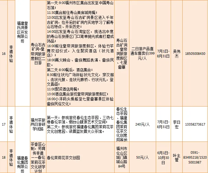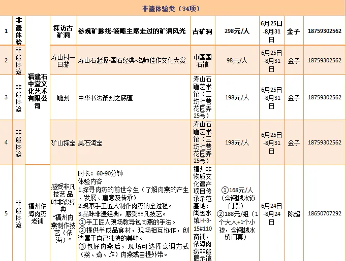 福建石中堂文化艺术有限公司、福州依海肉燕老铺等推出“寿山村一日游”“感受非凡技艺 品味非遗经典”等34项非遗体验类研学旅游产品。