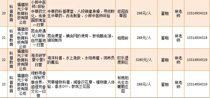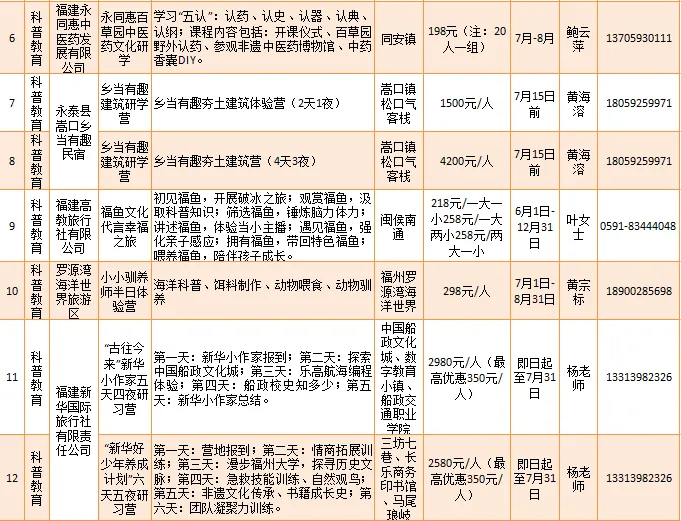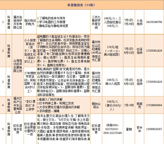 欧乐堡海洋世界、罗源湾海洋世界旅游区等推出“欧乐堡海洋世界夏令营两天一夜”“小小驯养师半日体验营”等23项科普教育类研学旅游产品。