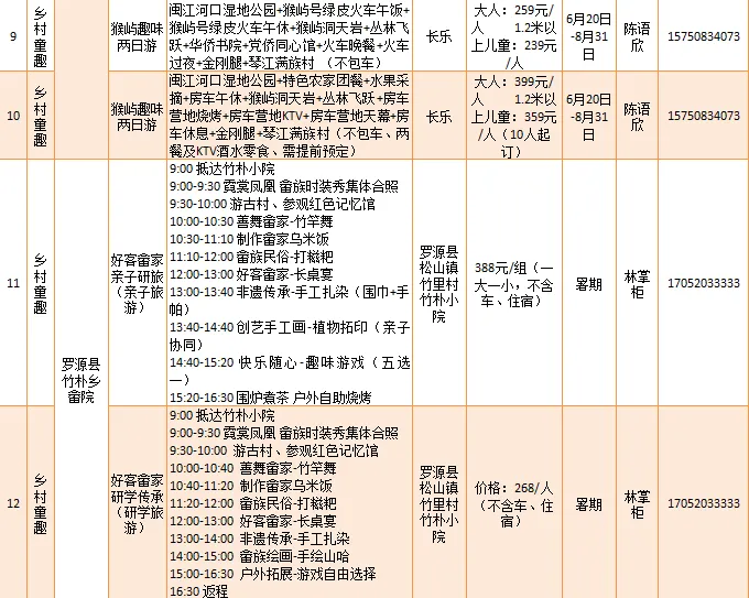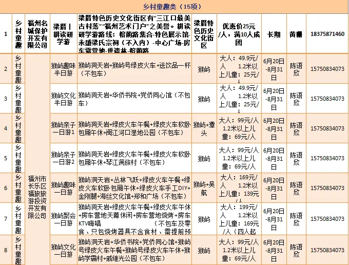 福州市长乐区福旅旅游投资开发有限公司等推出“猴屿趣味半日游”“好客畲家亲子研旅”等15项乡村童趣类的研学旅游产品。