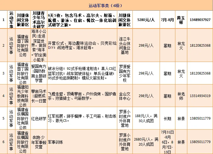 川捷休闲文体旅游区等推出“川捷青少年马术高尔夫研学之旅”“军营小将实战模拟主题夏日营”等6项运动军事类的研学旅游产品。
