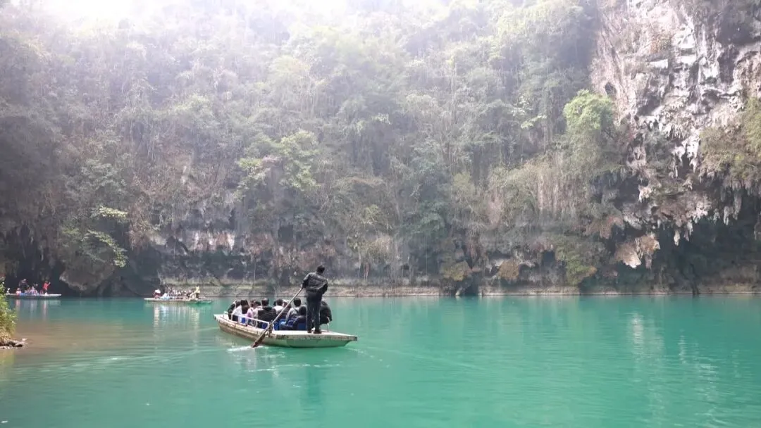游客 谢雯静:这里山清水秀的,水很绿,然后烟雾缭绕就如仙境般,真的很漂亮。几百公里开车过来也挺值得的,然后现在正好春节,就是想到处走走到处玩玩,这个旅程还是蛮圆满的。