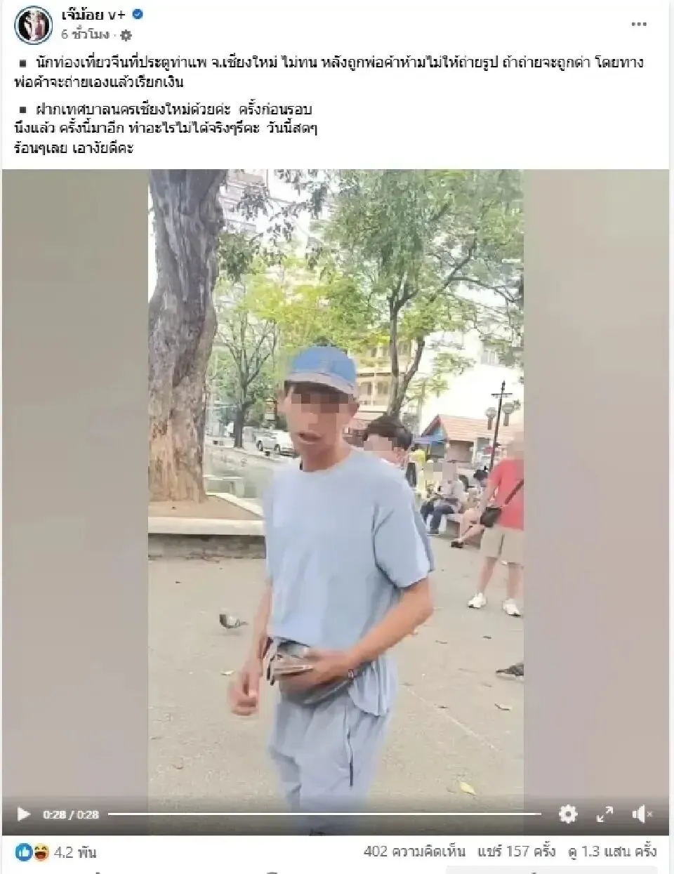 近日,清迈著名地标塔佩门发生一起恶劣事件。据社交媒体爆料,一名当地售卖鸟食的小贩不仅阻挠中国游客自行拍照,还对其进行言语辱骂,并强行要求支付费用由其代拍。
